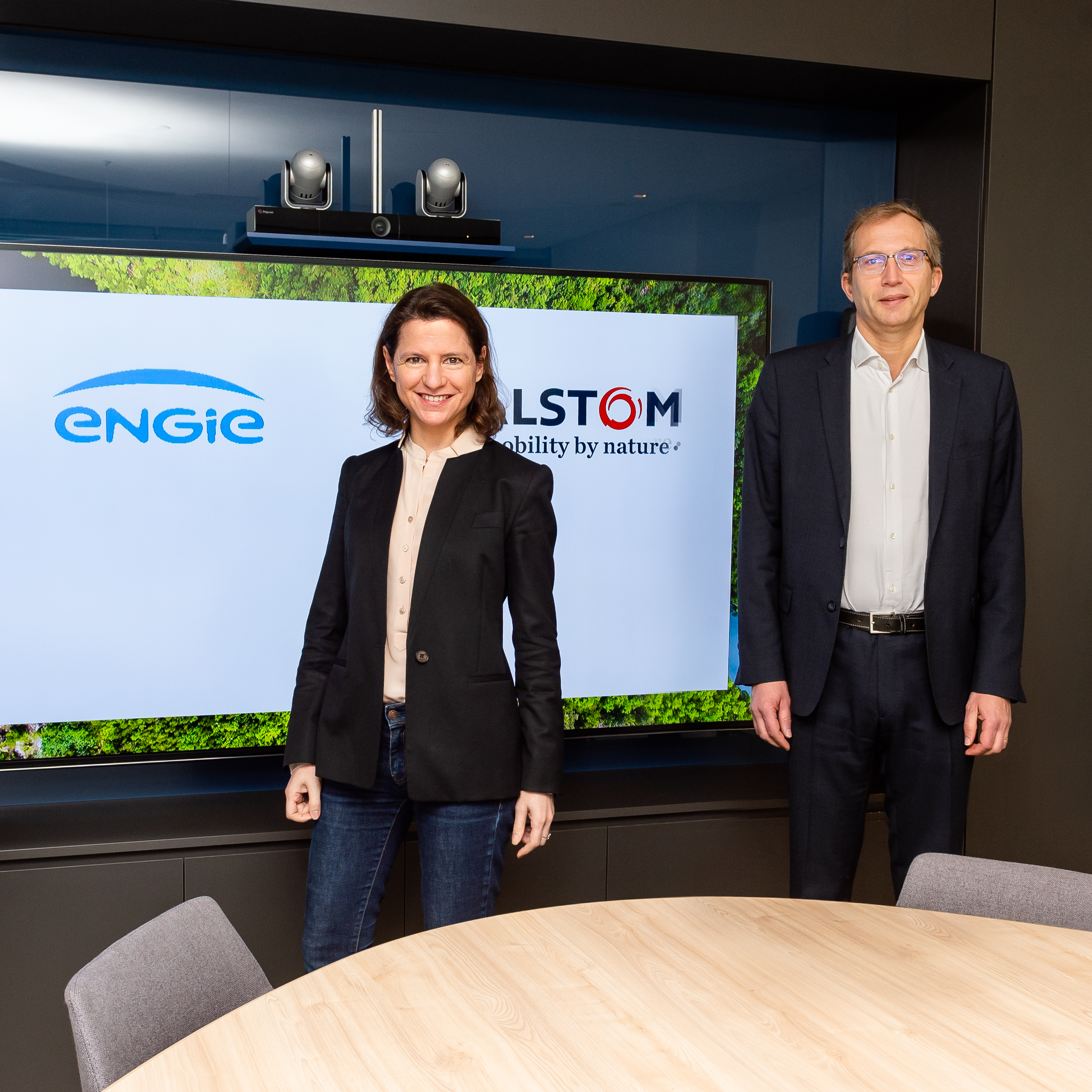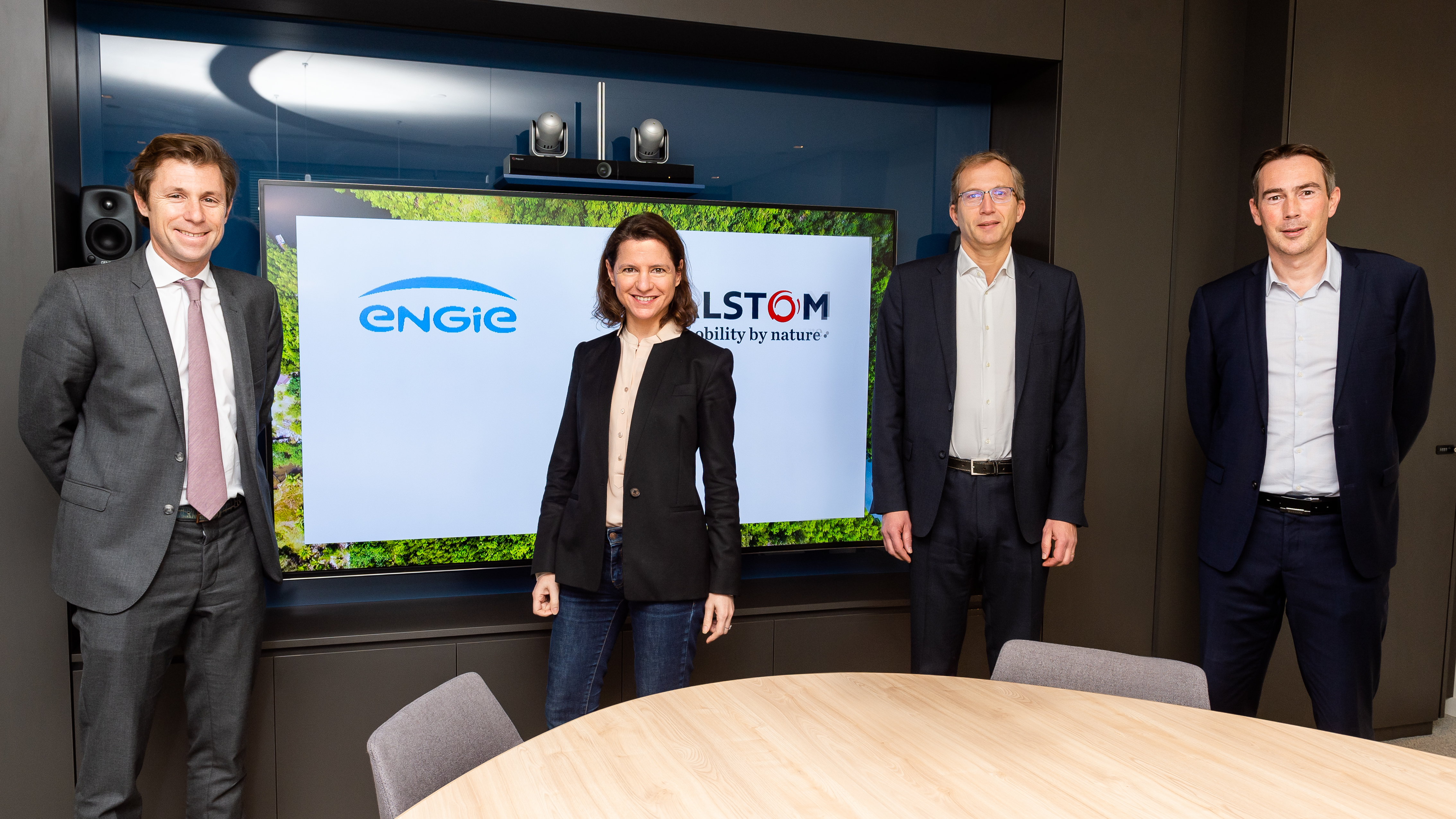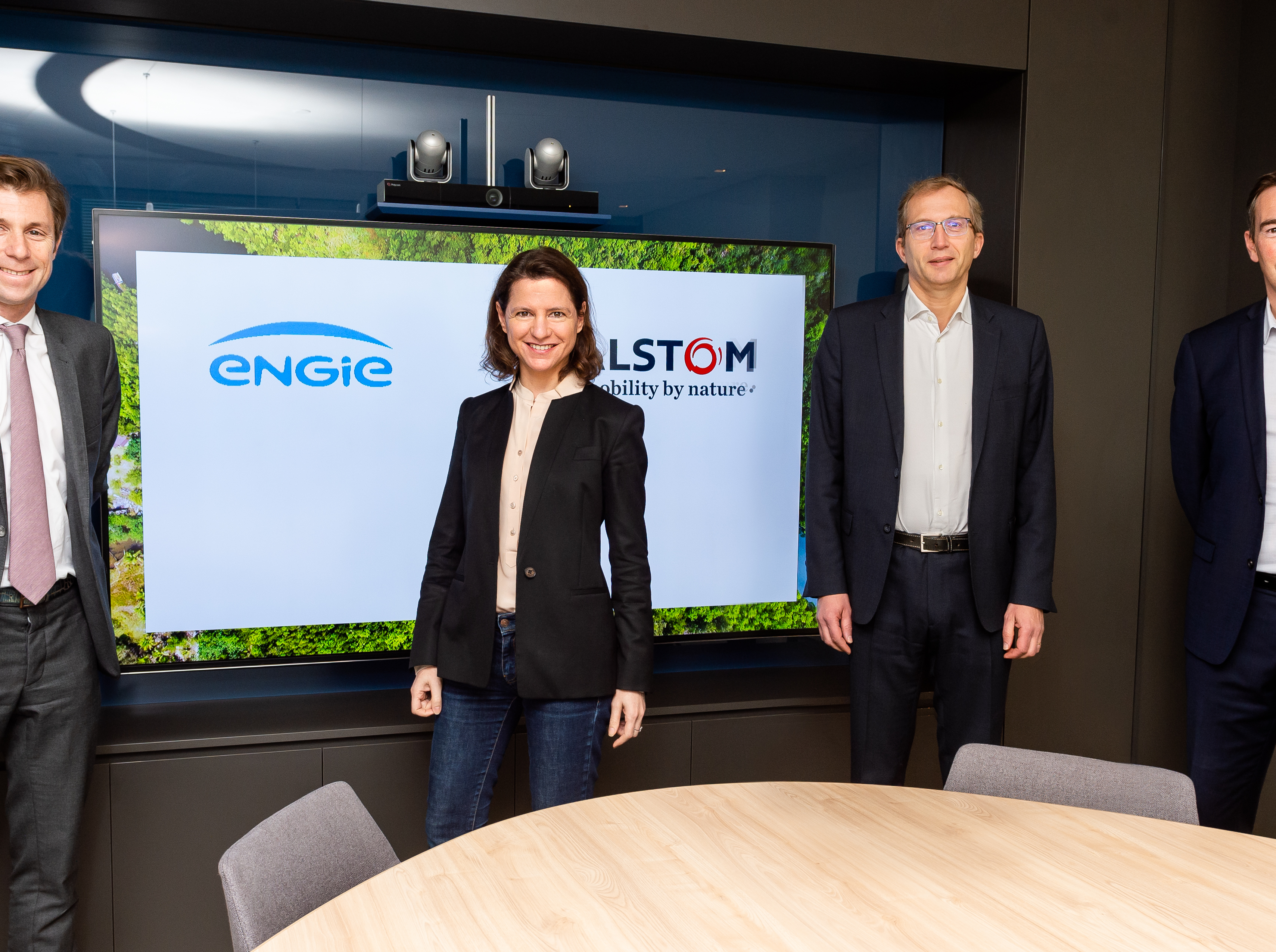 From left to right: Sébastien Arbola, Executive Vice President ENGIE in charge of Thermal Production, Hydrogen & Energy Supply ; Catherine MacGregor, Chief Executive Officer ENGIE ; Henri Poupart-Lafarge, Chief Executive Officer, Alstom ; Raphael Bernardelli, Vice-President, Corporate Strategy, Alstom.